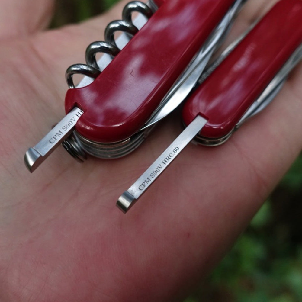 Complete your knife build with this premium steel toothpick, crafted for a wide range of knife sizes from 58mm up to 111mm. Made from CPM S90V stainless steel, it delivers exceptional hardness and durability, making it ideal for restorations, custom builds, or replacing worn components.