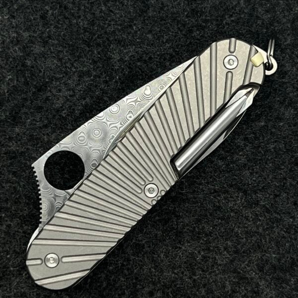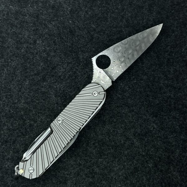 91mm Knife Damascus Powder Steel Handmade Thumb Ramp Replacement Blade Looks Like Spider SAK Parts