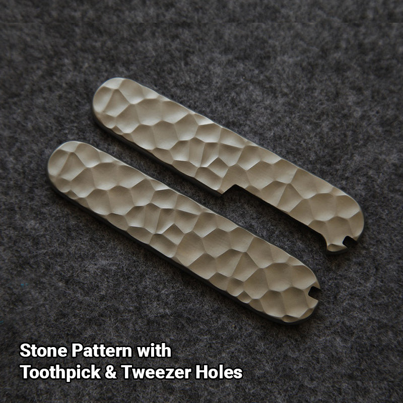 The patch is made of titanium alloy TC4, and the surface is beautiful. Handle modification suitable for 91mm Knife. With toothpick tweezers hole, carefully polished and chamfered to make the arc transition naturally with the toothpick tweezers as much as possible, with rounder edges and better hand feeling